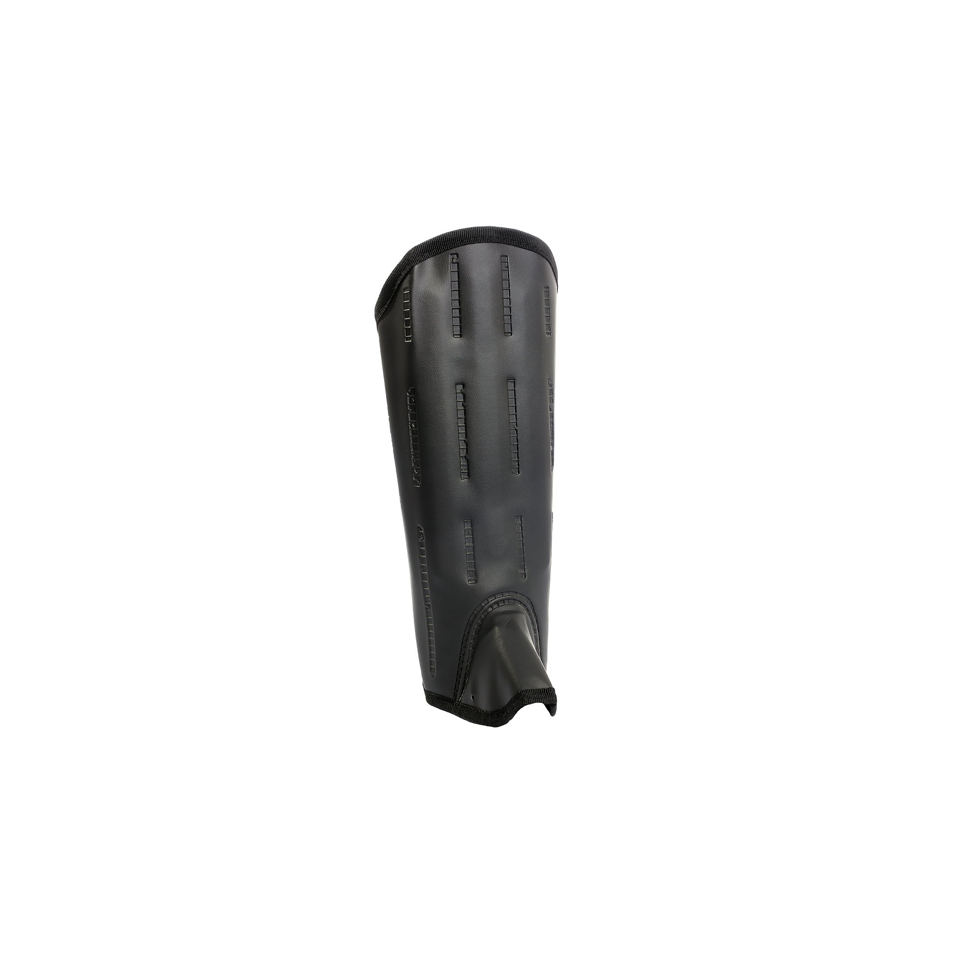 Perneira com revestimento interno em tecido macio e revestimento externo em tecido plástico.